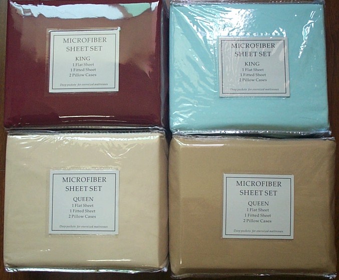 Customer's designs are welcomed. Hot sales ...Microfiber 4/6 pcs sheet set Fabric: 100% polyester microfiber Solid 70gsm Size: USA size , Twin/Full/Queen/King/Cal King Color: More than 12 colors are available